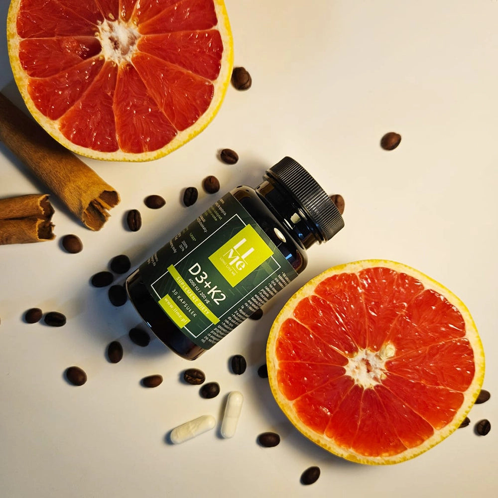 Produkt nie jest przeznaczony do diagnozowania, leczenia, łagodzenia objawów lub zapobiegania jakimkolwiek chorobom. Informacje o mechanizmach działania witamin D3 i K2 opierają się na badaniach naukowych, które mogą nie odzwierciedlać w pełni indywidualnej odpowiedzi na suplementację.